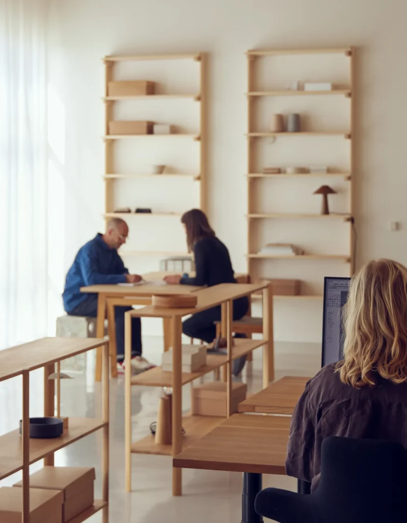 At the offices of Lasse Larsen Huse, a storied Danish home builder, Form & Refine’s natural-material furniture creates a sense of peace and minimalist order in a space rooted in quality and craftsmanship.