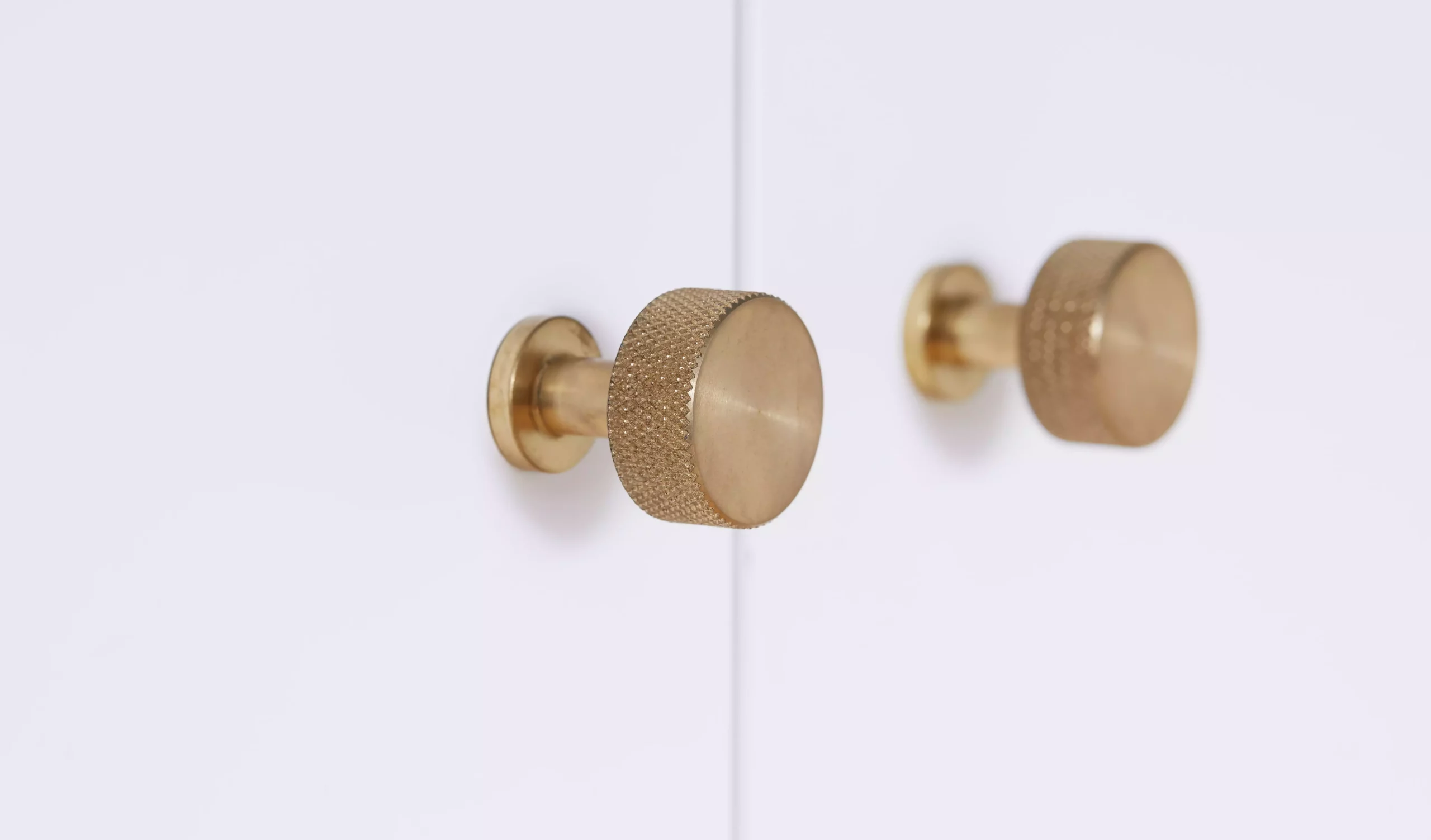 The hook has been created from a single piece of lathe turned solid steel/brass. The grid surface provides a structure that is pleasant to the touch and keeps clothes and towels from slipping off. Depending on your preference you can either let it patinate, so it attains a darker shade, or keep it polished and shiny. The hook is also well-suited as a handle on drawers, cupboards, etc.