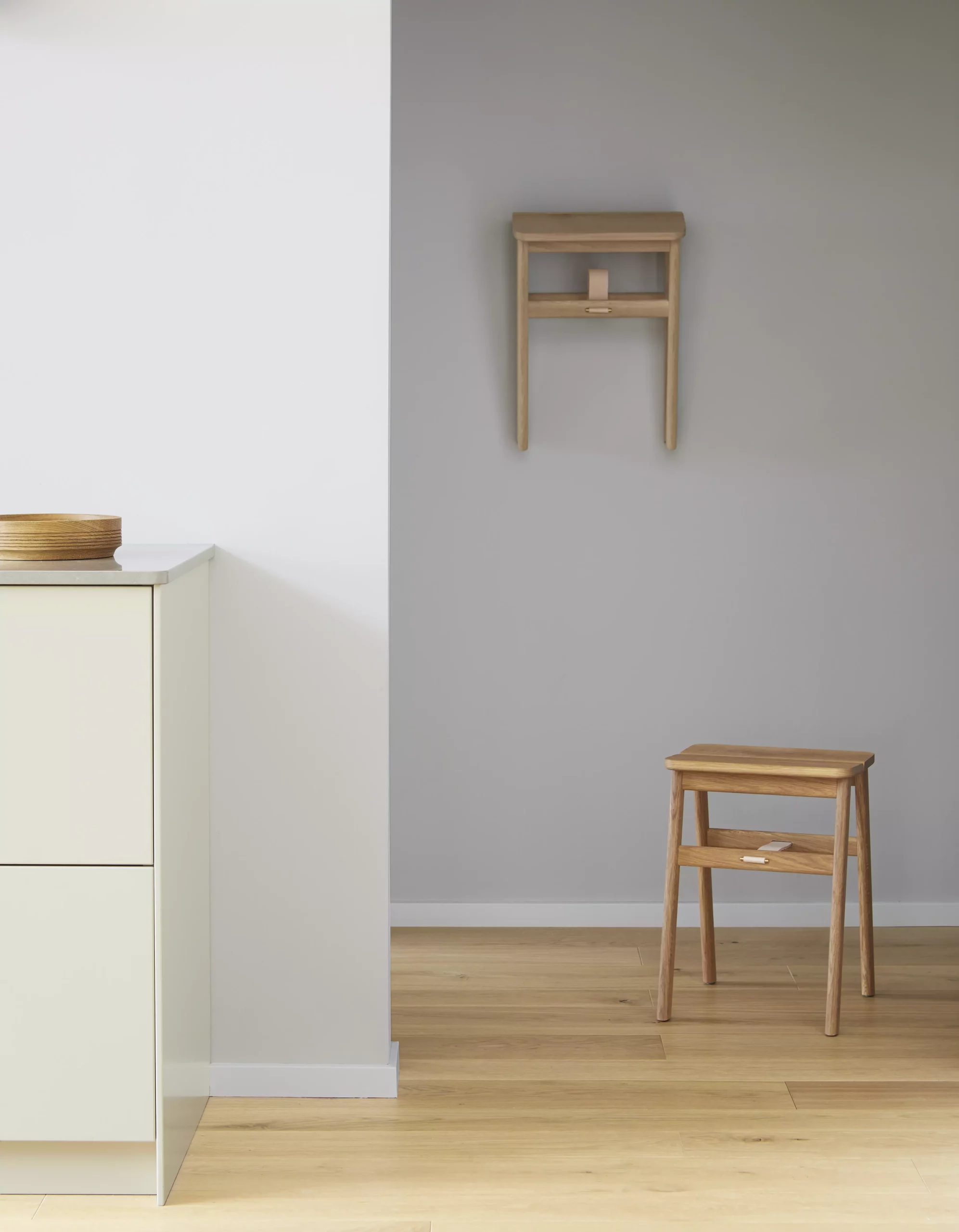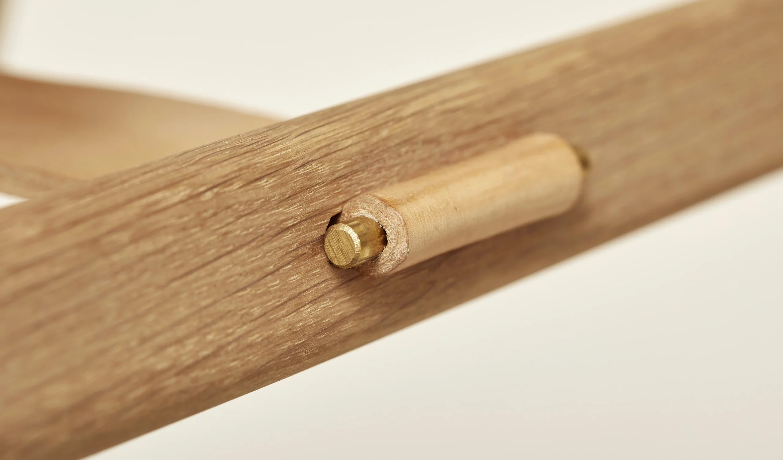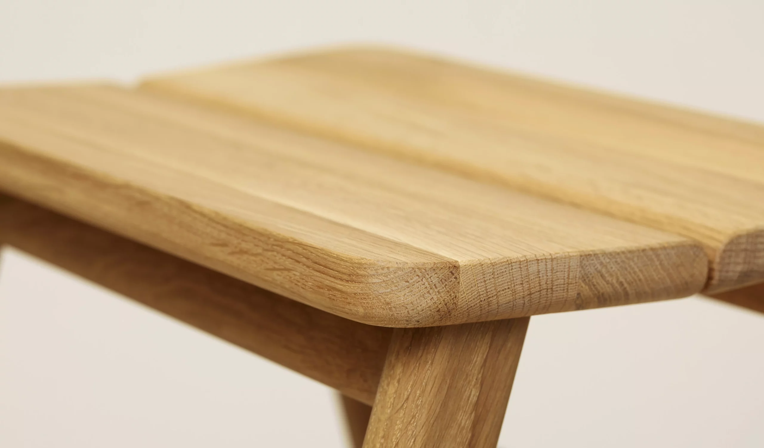 A stool that fits all needs and wants, whether the focus be upon form, functionality, comfort, or durability. The two sides of the seating base are angled 5 degrees towards each other. This unique design feature which facilitates surprising comfort for a stool making this an ideal choice for supplementary seating. The leather band beneath the seat has a supporting brass rod which gives the stool a final touch of detail and a prominent form. In all, a very durable item because of its solid wood and strong side beams.