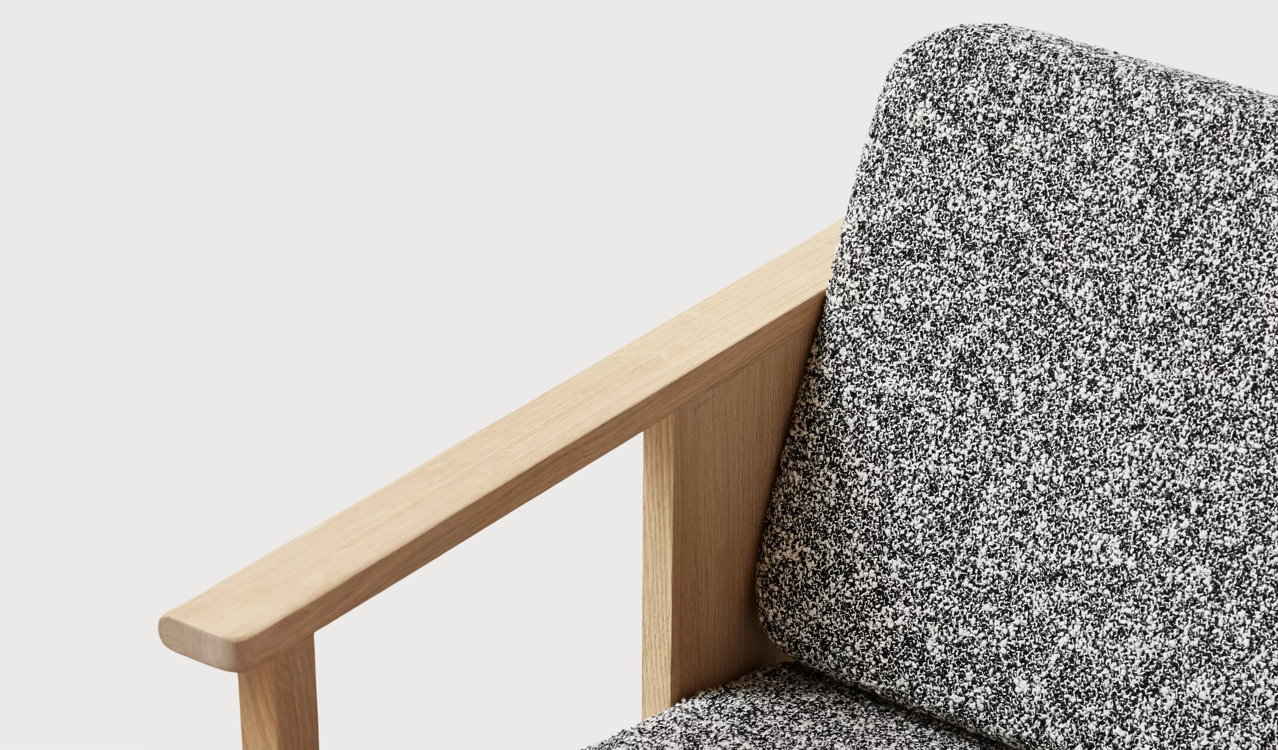 ”We wanted to make a small, compact chair with a distinctive expression. The sturdy rear legs play an important role for the chair’s expression, construction and dimensions. During the development phase, We had an intensive focus on integrating as much comfort as possible into a relatively small chair”