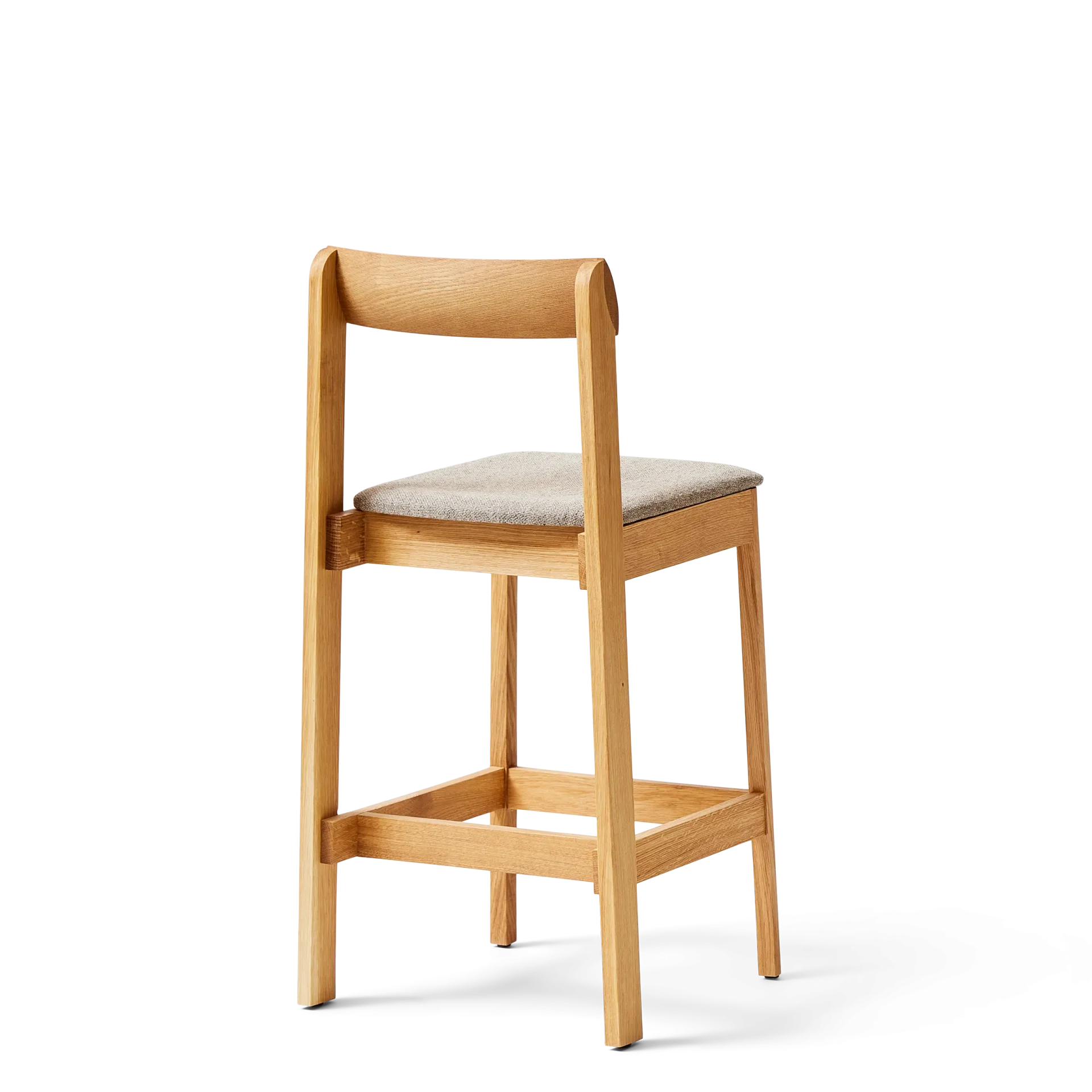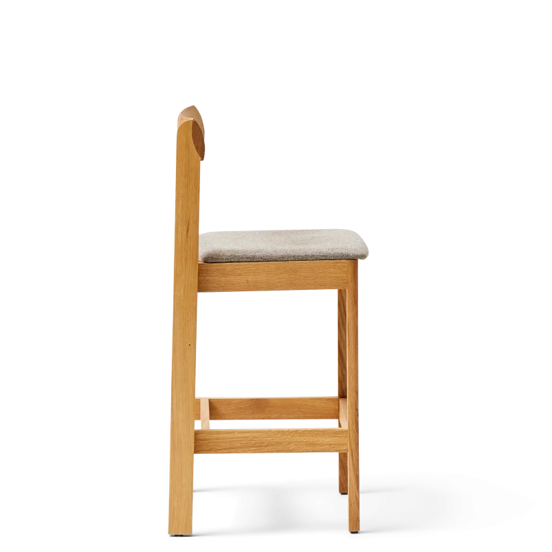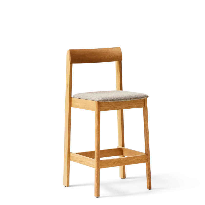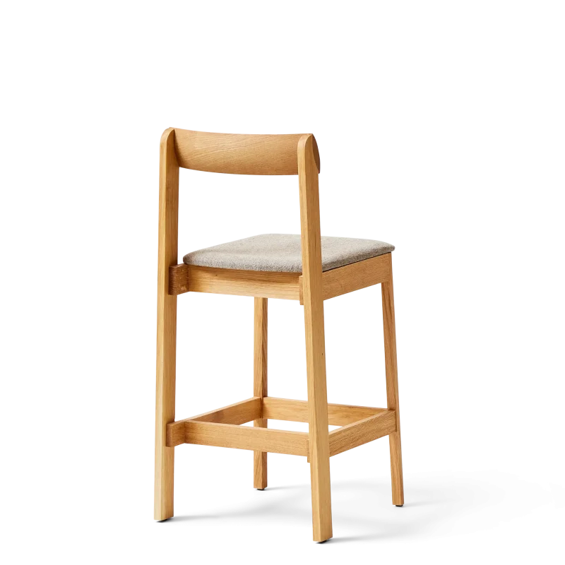 ”With this bar chair we searched to balance something refined and robust at the same time. We aimed for a chair with distinct character and gave it elongated back legs that smoothly grip the curved backrest. It should also be comfortable and fit into any environment”