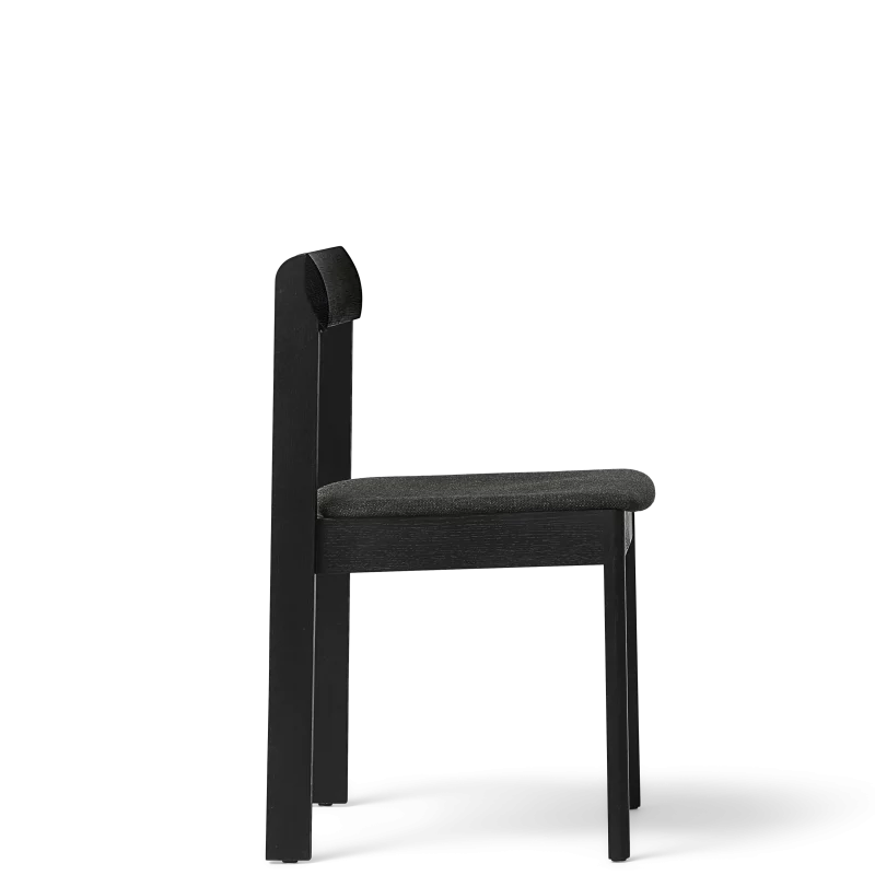 This is an archetypal chair created by Form & Refine. The unusual seat shape, which was inspired by human anatomy, promotes good posture and provides excellent seating comfort. The organically shaped solid backrest gives the chair a minimalist and personal style. The combination of strong, solid legs and the Hallingdal upholstery lends the chair a surprisingly light and stunningly sharp visual appearance. The exquisite backrest is steam-bent and made from a single solid piece of wood. The upholstered seat cushion is snugly fitted to the frame with softly rounded edge. The chair is upholstered with the classic woolen textile Hallingdal 65 in an updated colour scale and a traditional pattern. The textile is a blend consisting of 70% new wool and 30% viscose. The wool provides exceptional durability and flexibility, whilst the viscose lends brilliance and depth to the colour. Both materials are dyed before they are spun, which highlights the rich texture of the fabric. The textile, Hallingdal 65, 0376, was developed in partnership with Kvadrat.