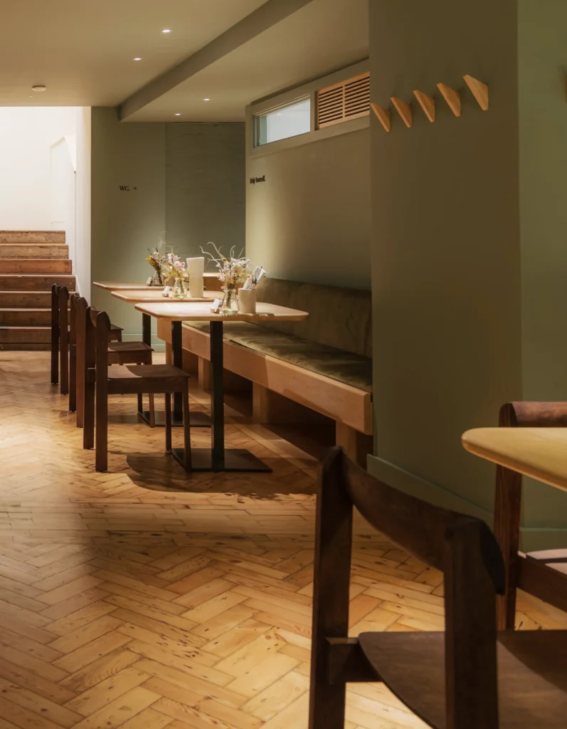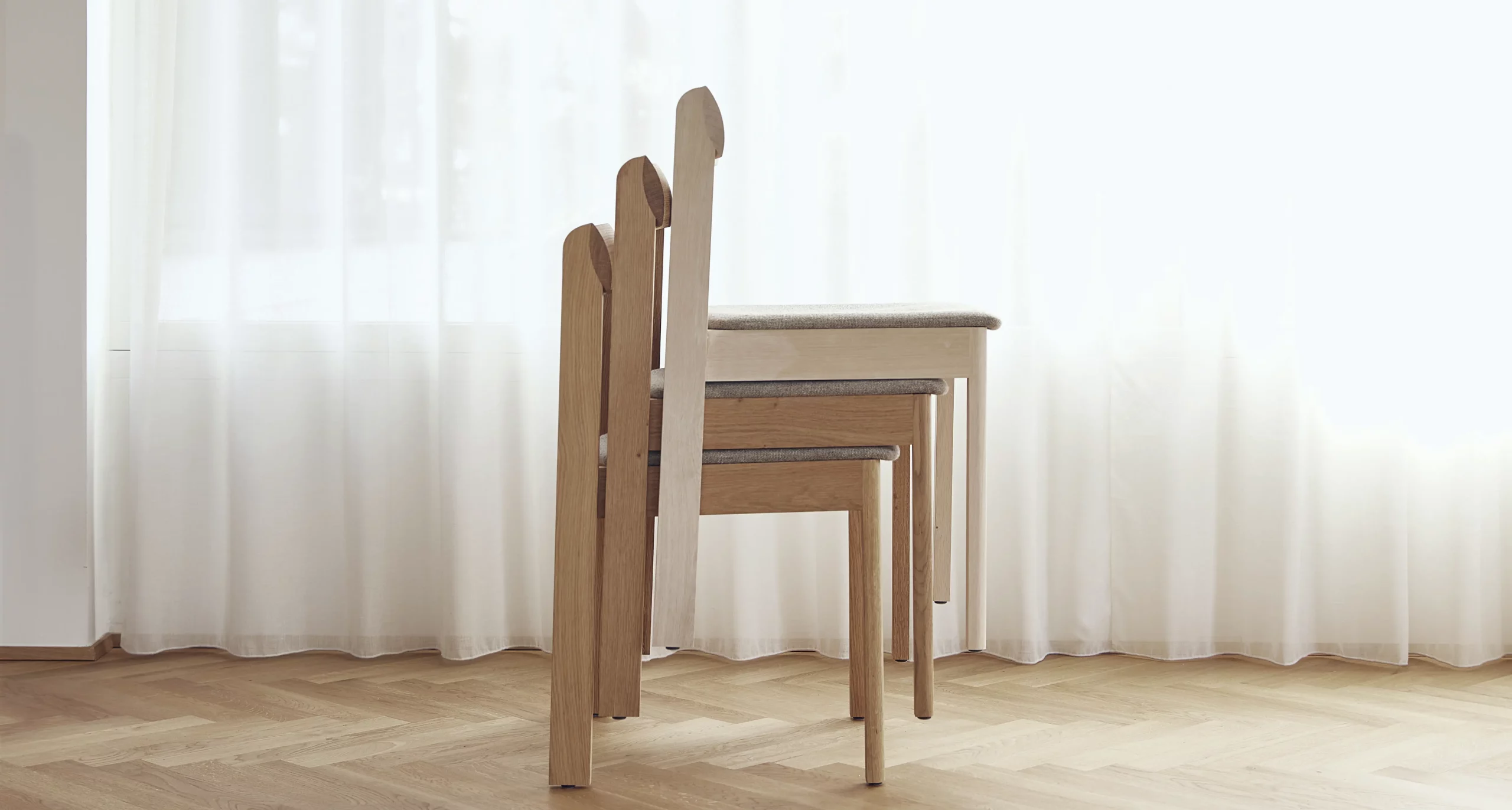 This is an archetypal chair created by Form & Refine. The unusual seat shape, which was inspired by human anatomy, promotes good posture and provides excellent seating comfort. The organically shaped solid backrest gives the chair a minimalist and personal style. The combination of strong, solid legs and the Hallingdal upholstery lends the chair a surprisingly light and stunningly sharp visual appearance. The exquisite backrest is steam-bent and made from a single solid piece of wood. The upholstered seat cushion is snugly fitted to the frame with softly rounded edge. The chair is upholstered with the classic woolen textile Hallingdal 65 in an updated colour scale and a traditional pattern. The textile is a blend consisting of 70% new wool and 30% viscose. The wool provides exceptional durability and flexibility, whilst the viscose lends brilliance and depth to the colour. Both materials are dyed before they are spun, which highlights the rich texture of the fabric. The textile, Hallingdal 65, 0376, was developed in partnership with Kvadrat.