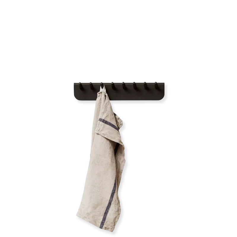 A flexible multi-purpose rack with a simple functional design for practical use throughout your living space, may it be in the bathroom, kitchen, or hallway. The beauty of the framework and the formation of the pegs creates a structured design constituted by recognizable repetitions. The pegs are carefully detailed and have a curved form with a robust foundation. The sturdy and strong backrest provides durability and means that the coat rack can take considerable weight.