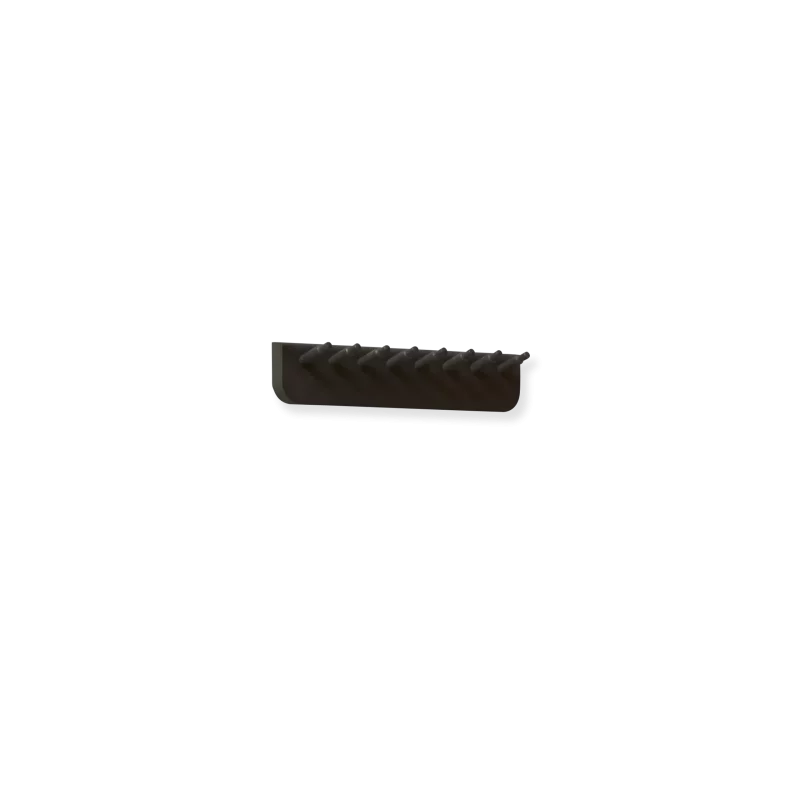”We wanted to make a coat rack where repetition becomes an essential element of the expression. By repeating the same hook many times and putting them in a row, a graphically beautiful rhythm is created. The hooks have a rounded tip and a soft shape which provides better grip when hanging items like coats and jackets”