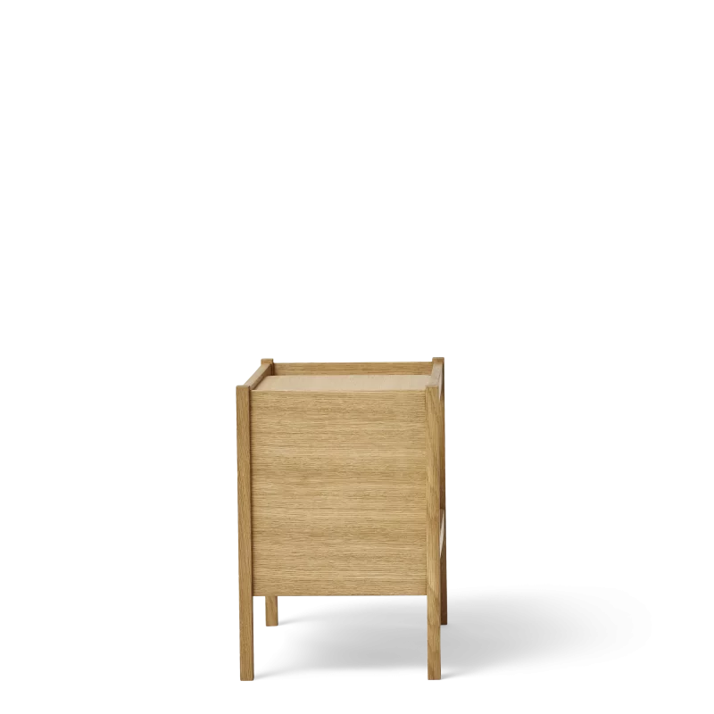 A small versatile companion for any type of living space. The contrast between the sharp leg profiles and the gently rounded edges of the tabletop creates a striking and sophisticated effect. In a functional detail, a gap between the frame and the tabletop creates a convenient place to store journals, magazines and newspapers. The table is carefully dimensioned to match a wide variety of uses and contexts, for example as a coffee table, magazine rack, side table or bedside table.