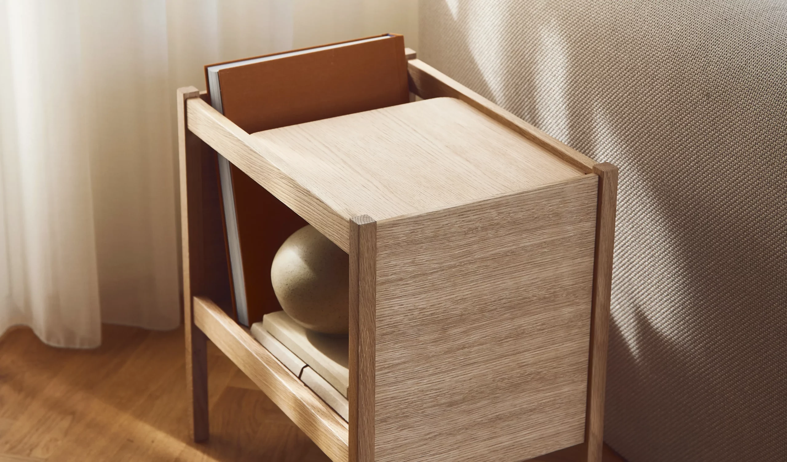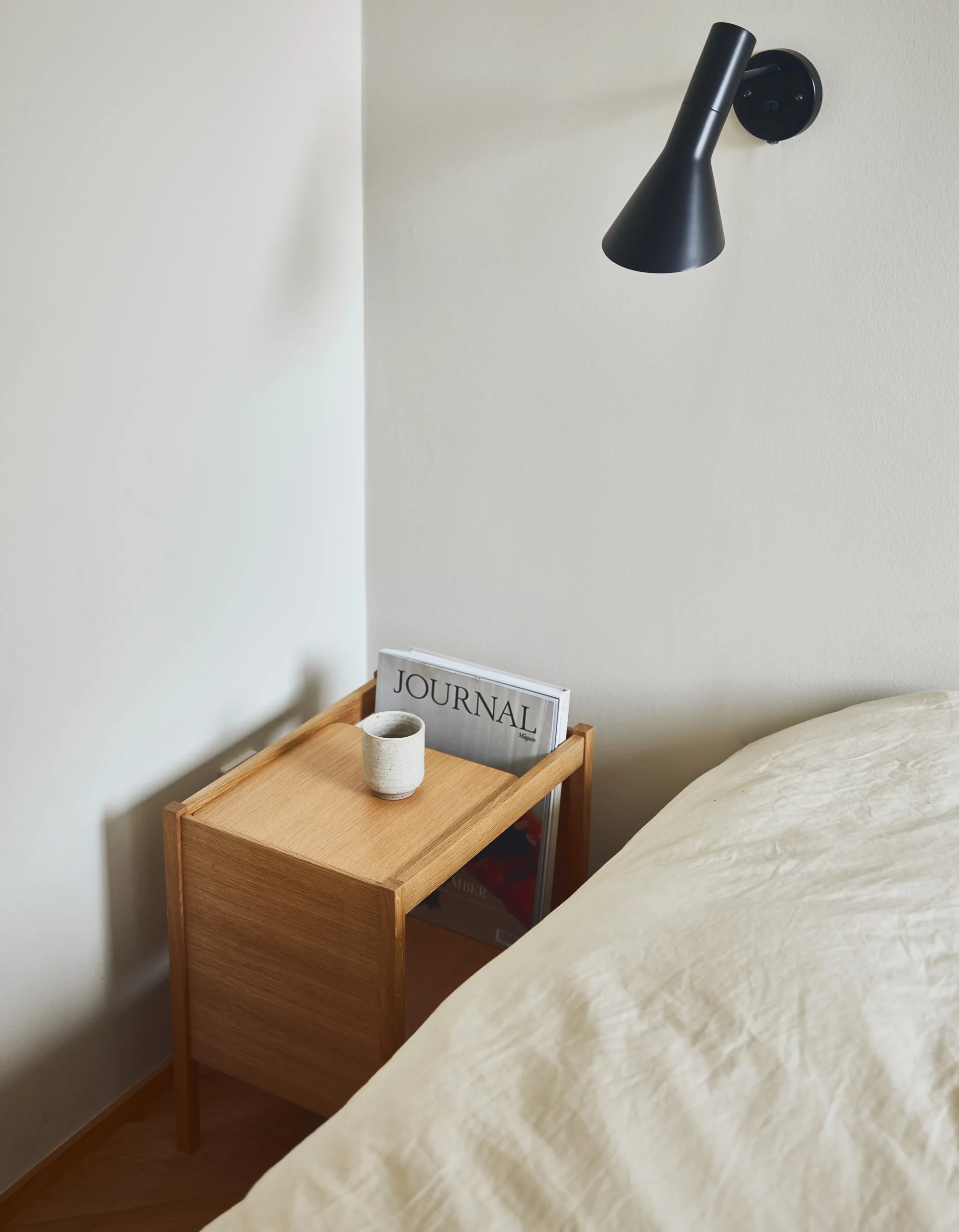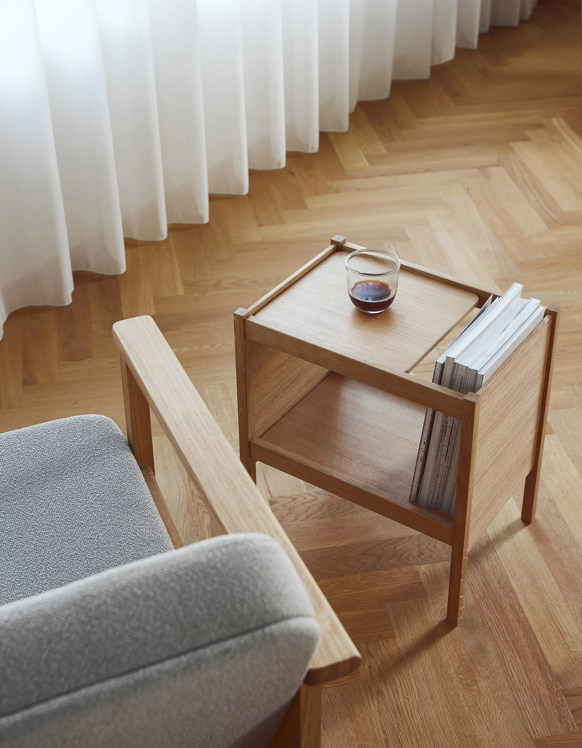 A small versatile companion for any type of living space. The contrast between the sharp leg profiles and the gently rounded edges of the tabletop creates a striking and sophisticated effect. In a functional detail, a gap between the frame and the tabletop creates a convenient place to store journals, magazines and newspapers. The table is carefully dimensioned to match a wide variety of uses and contexts, for example as a coffee table, magazine rack, side table or bedside table.
