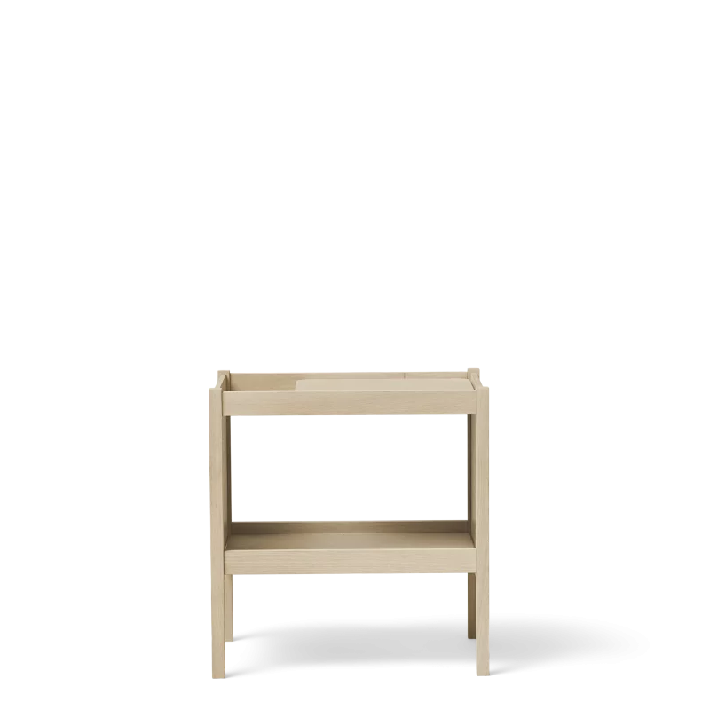 A small versatile companion for any type of living space. The contrast between the sharp leg profiles and the gently rounded edges of the tabletop creates a striking and sophisticated effect. In a functional detail, a gap between the frame and the tabletop creates a convenient place to store journals, magazines and newspapers. The table is carefully dimensioned to match a wide variety of uses and contexts, for example as a coffee table, magazine rack, side table or bedside table.
