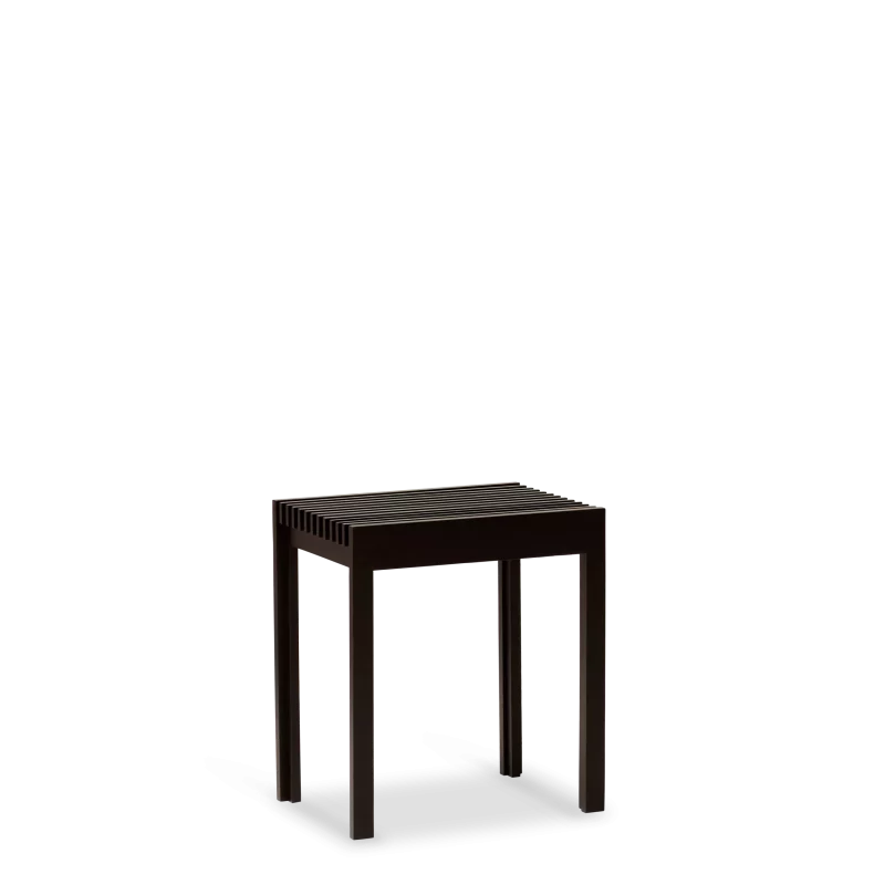 A very versatile and ultra-lightweight stool to be used for extra seating, an elegant design object or side table. Even though it is very light in weight there is no compromise in quality, the stool is remarkably sturdy and strong. This piece boasts highly detailed woodwork and minimalistic wooden slat repetition.