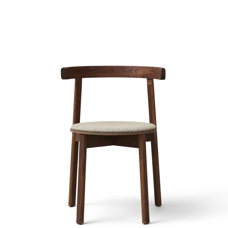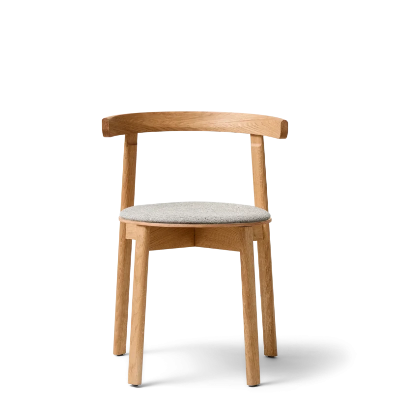Lunar Chair is a versatile wooden dining chair with a great balance between functionality, aesthetics, and comfort. The characteristic rounded backrest with integrated armrest, crafted from a single piece of solid wood, ensures optimal comfort with both elbow and lower back support and enables a variety of seating positions.