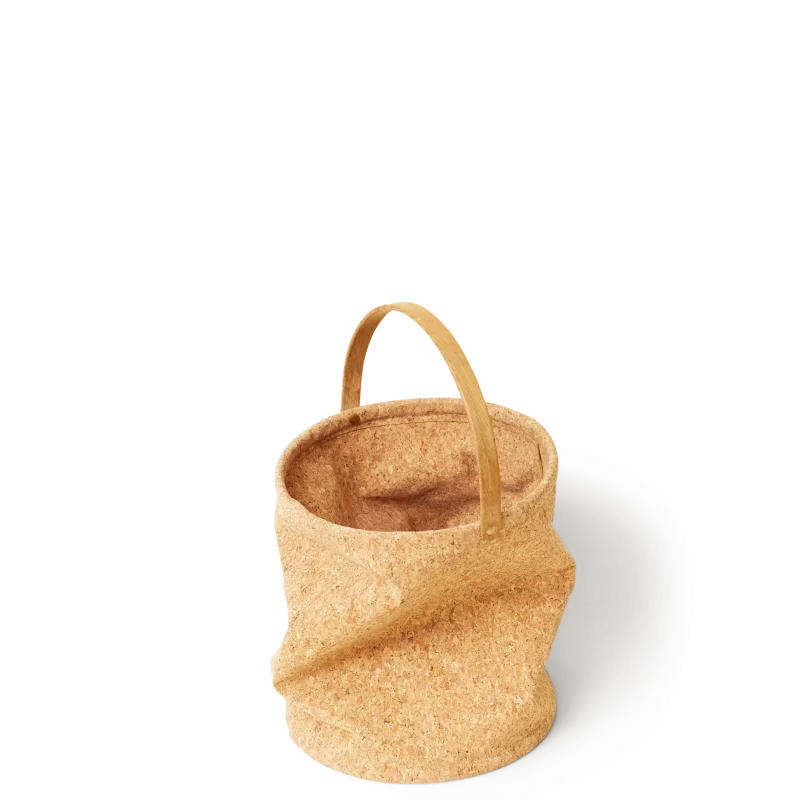 The cork paper bin was a take on the classic paper bin but was also intended to be in general use in the home as a magazine holder or for different kinds of everyday objects. The crumpled look resulted from the designer wanting the product to be flat-packed during shipping, and this practical design choice has resulted in one of the item’s most characteristic features. To better control the shape of the bin, splines were inserted in the top and bottom, giving it a perfectly round footprint.