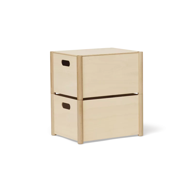 A multipurpose, high quality, and distinctive storage box for all domestic or hospitality spaces. The four significant solid pillars have a small rounded top to make it easy to stack the boxes without them tipping over. It also creates a unique compelling form with a clear shadow line when the boxes are stacked. Able to take considerable weight and it is possible to stack as many as desired. Due to careful and measured design these storage boxes can stand alone on the floor or fit onto shelving.