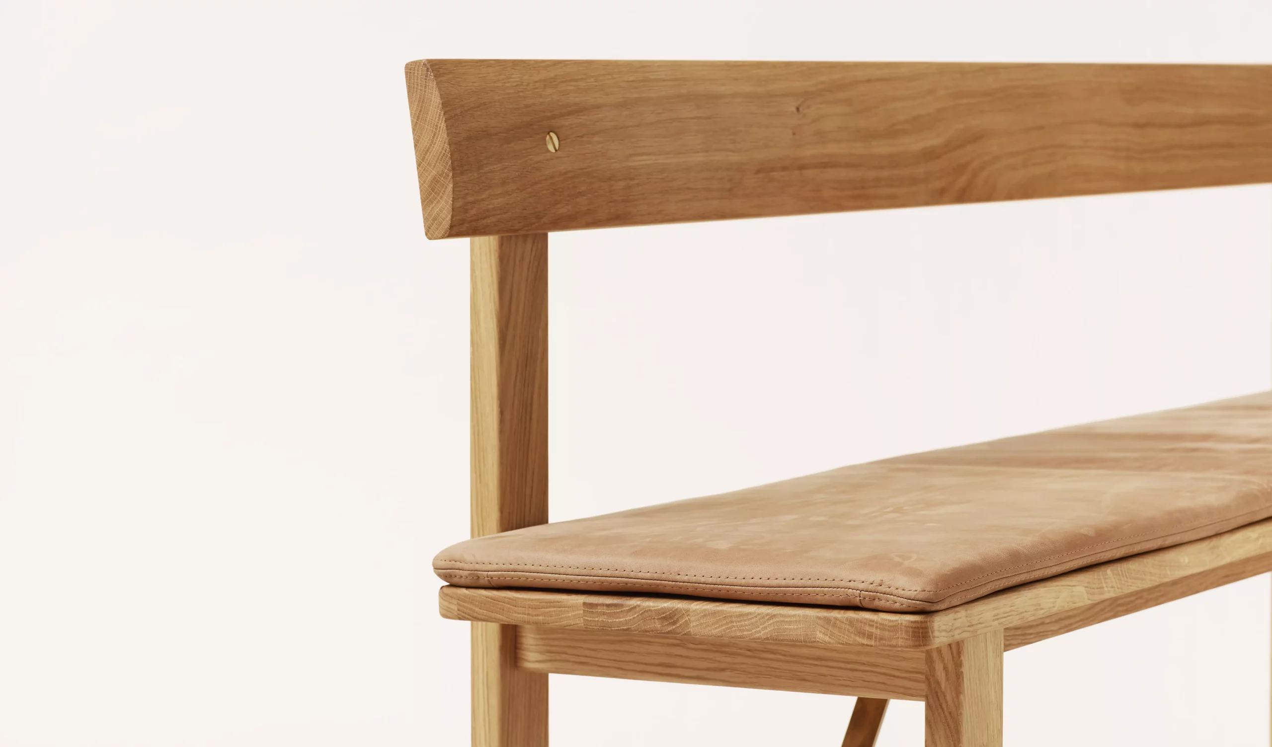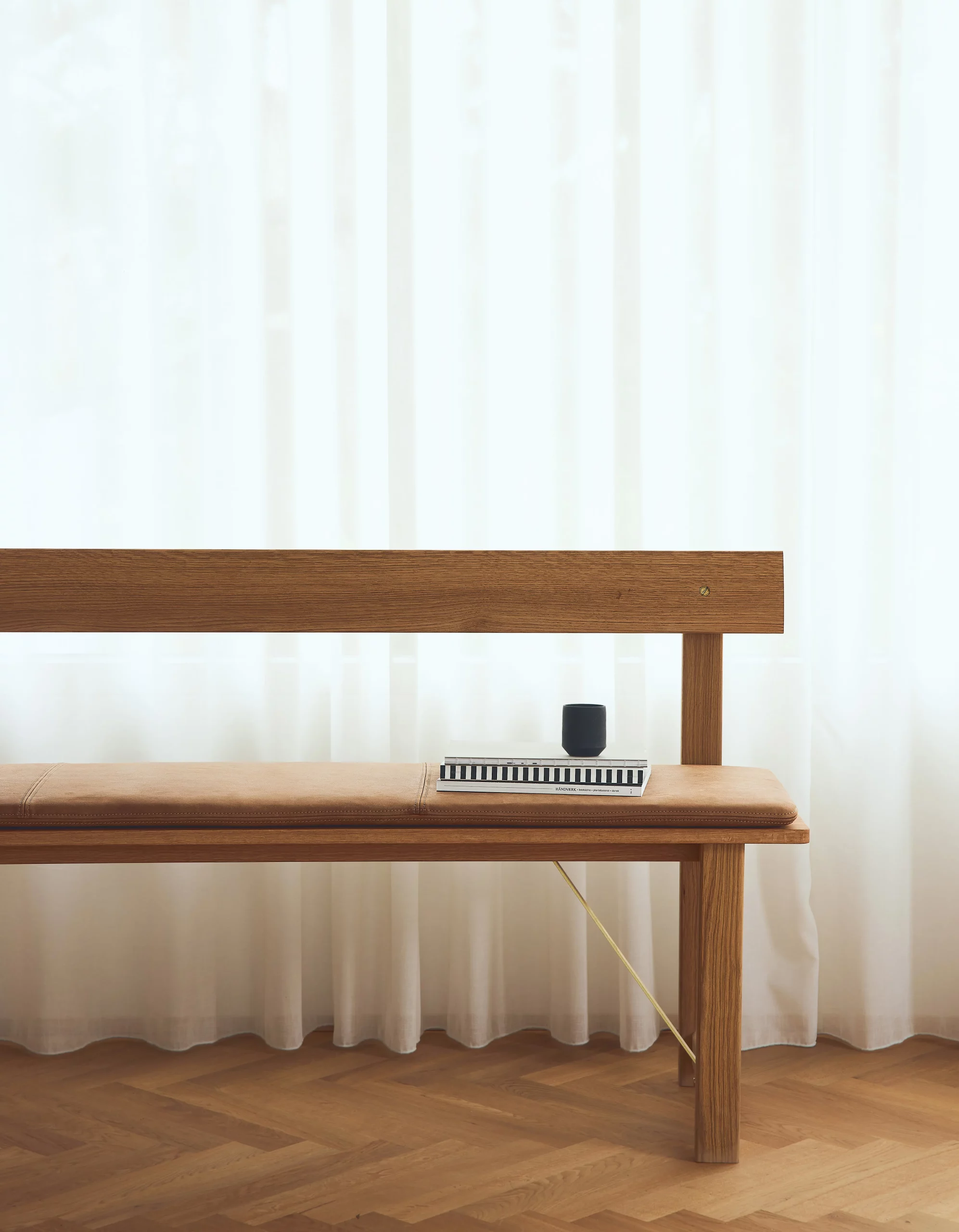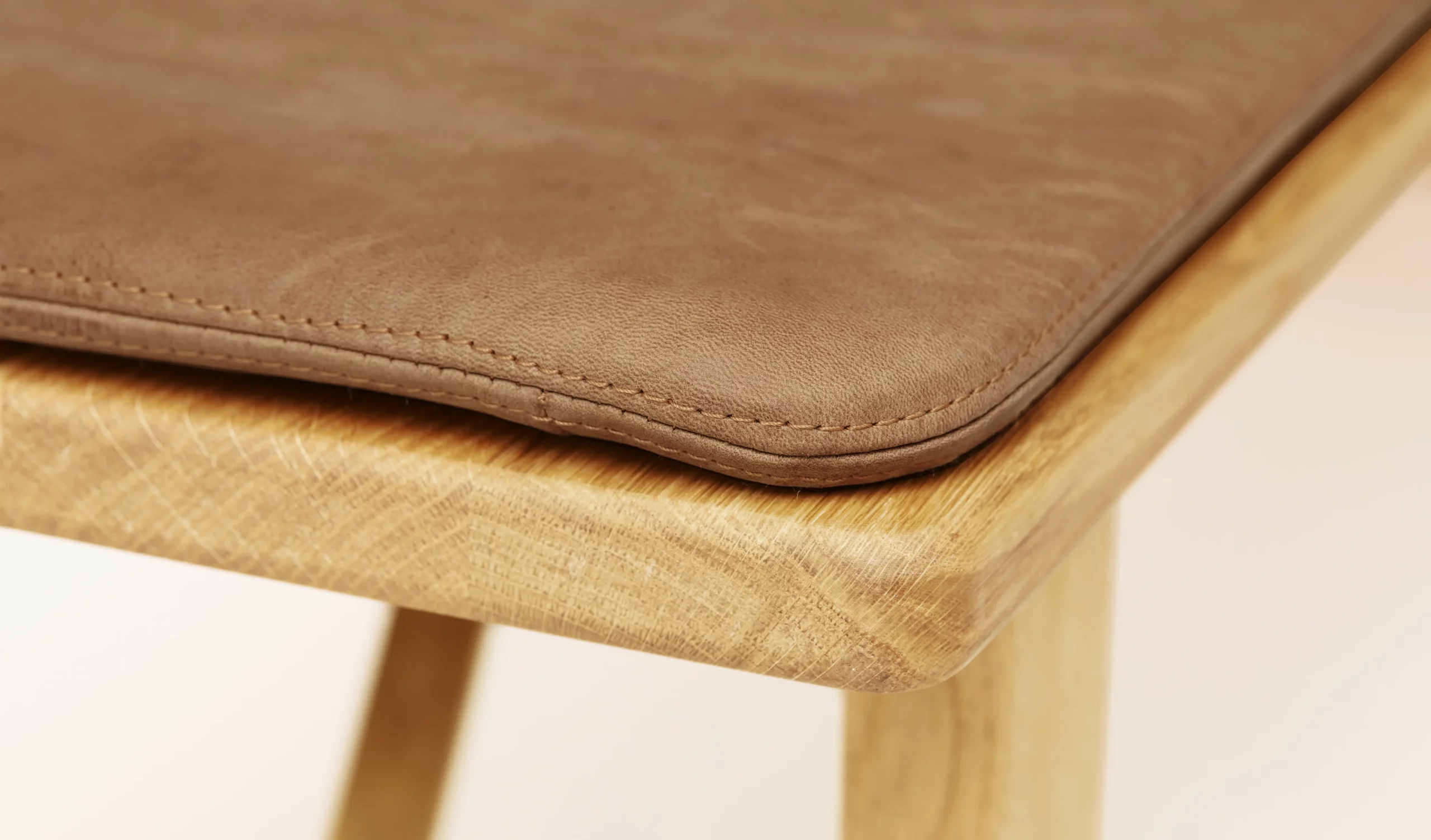 The bench can be accompanied by a leather cushion which offers an extra level of comfort and style. Due to its natural material, the leather cushion will patinate beautifully over time