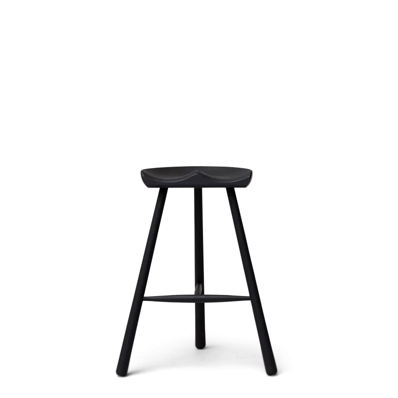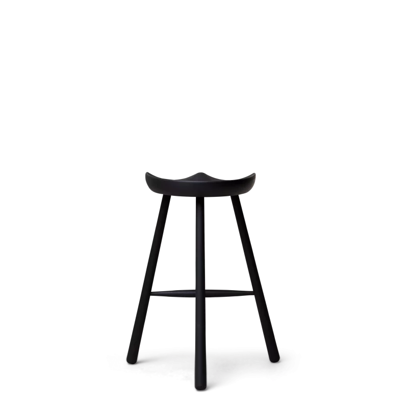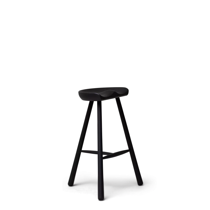 The seat is shaped out of one large solid piece of wood and because of the variations in the woodgrain, every Shoemaker Chair™ is completely unique. Together, the turned legs and the stabilizing T connection create a harmonic and aesthetic piece of furniture with strong references to the Nordic design universe.