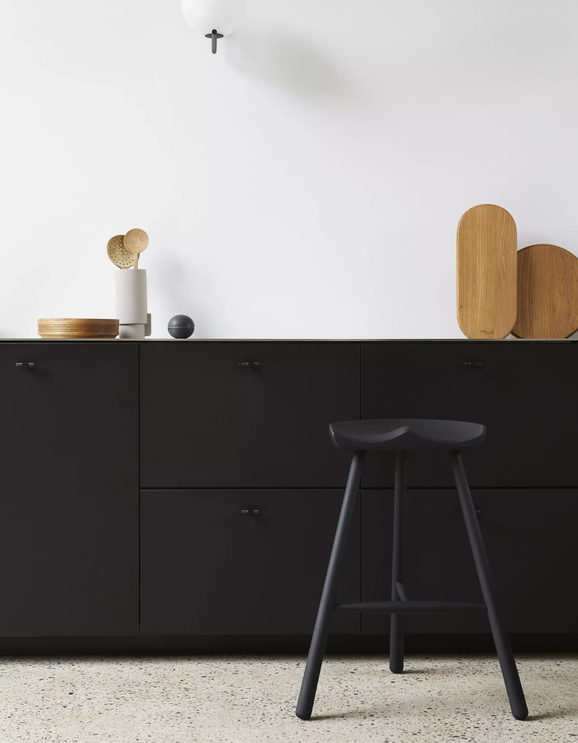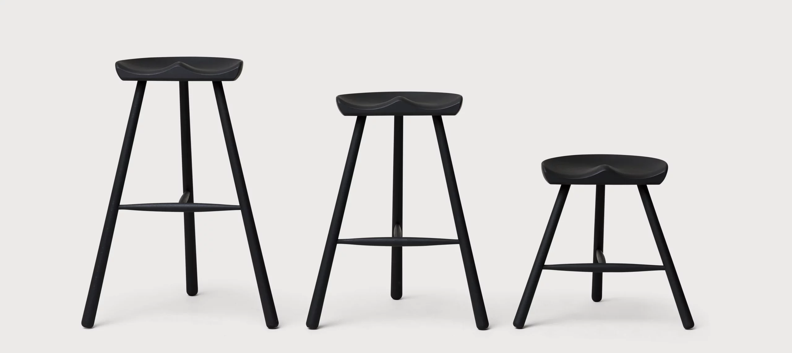 The seat is shaped out of one large solid piece of wood and because of the variations in the woodgrain, every Shoemaker Chair™ is completely unique. Together, the turned legs and the stabilizing T connection create a harmonic and aesthetic piece of furniture with strong references to the Nordic design universe.