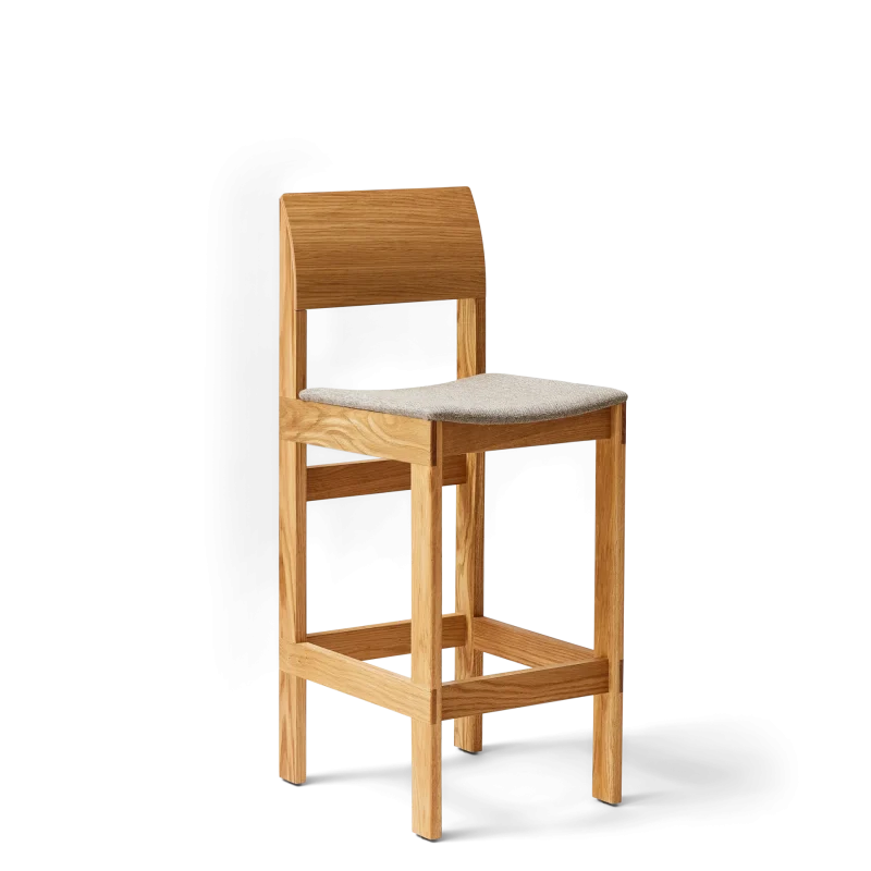 Sonder is a chair that offers high comfort with its long, curved backrest and soft, flat, U-shaped seat. The Sonder chair is characterised by a touch of Brutalism, with its sturdy legs and crossbars. This is combined with a fresh and exciting use of finely curved veneer on the seat and back.
