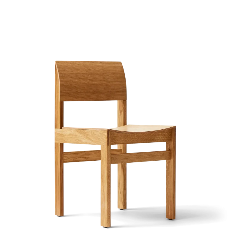 Sonder is a chair that offers high comfort with its long, curved backrest and soft, flat, U-shaped seat. The Sonder chair is characterised by a touch of Brutalism, with its sturdy legs and crossbars. This is combined with a fresh and exciting use of finely curved veneer on the seat and back.