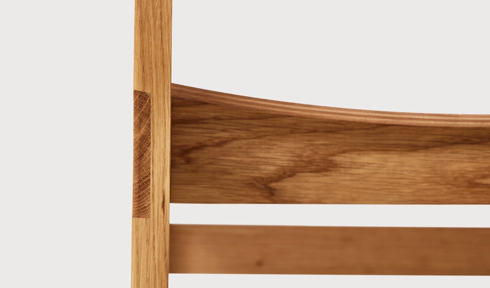 Sonder is a chair that offers high comfort with its long, curved backrest and soft, flat, U-shaped seat. The Sonder chair is characterised by a touch of Brutalism, with its sturdy legs and crossbars. This is combined with a fresh and exciting use of finely curved veneer on the seat and back. The chair is comfortable for long periods of time, as the long, curved backrest allows any user to find the optimum point of support for their back.