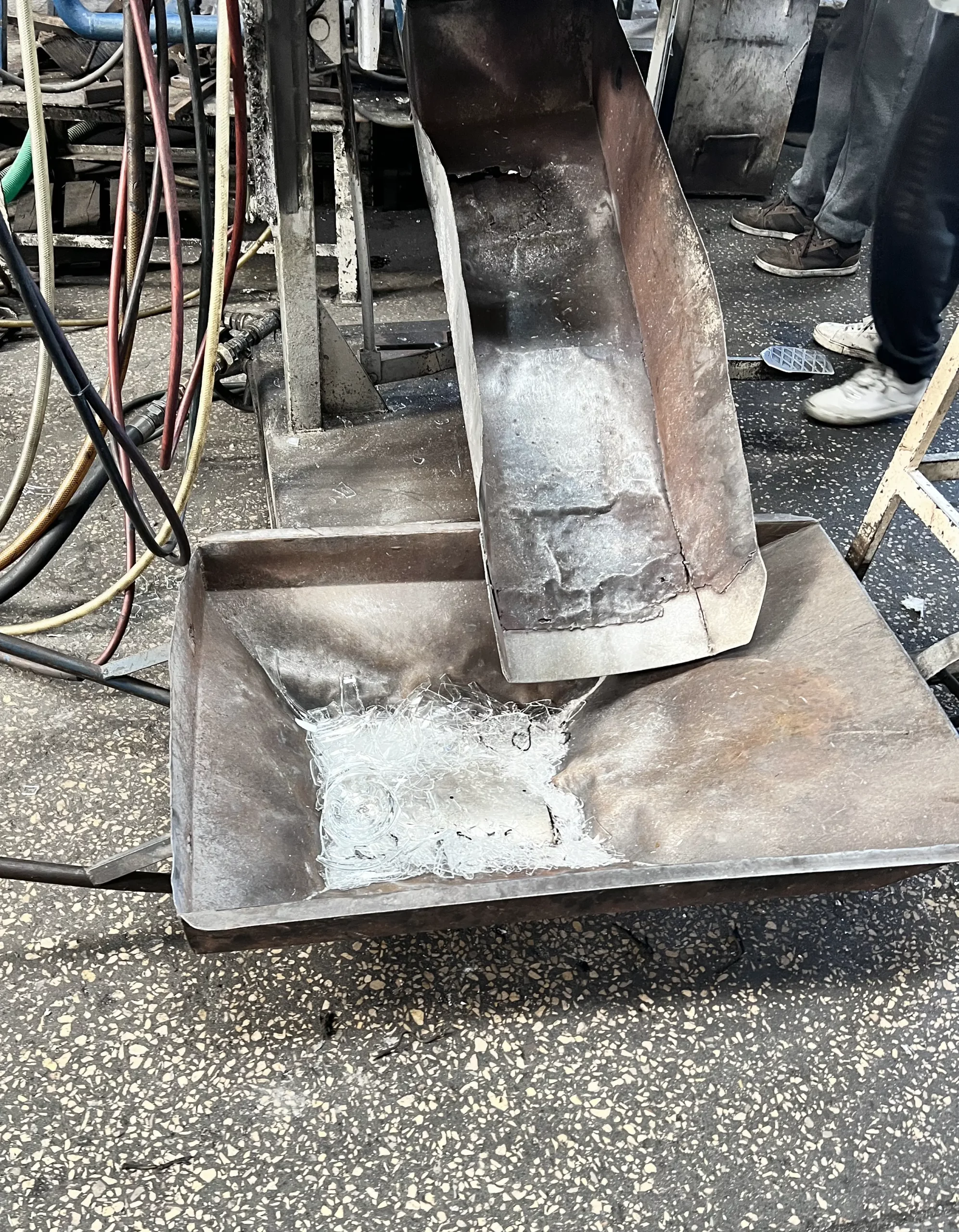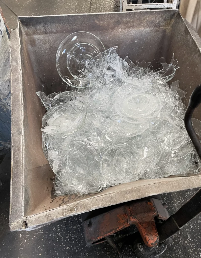 In the Portuguese factory, recirculation is a must. Used glass is 100% recyclable without any loss of material qualities – a property that other materials, such as textile or plastic, cannot match. All excess clear glass from off-cuts or mishaps in production enters a cycle where the glass is reheated and reused. This ensures a closed system of high-quality glass that is not mixed with glass from outside sources. This is important, as all glass has its own temperament. This means you cannot combine different types of glass and reheat the mix to a single temperature. At a given temperature, some glass will break, while some will be able to stand the heat. This means it is important always to use glass from the same ‘family’, so that it can be melted and reused along with new glass in production.